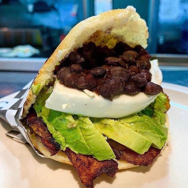 Arepas are a flatbread made of corn and made with special precooked corn flour. Venezuelan arepas have a unique texture that is crispy on the outside and soft on the inside. It is served with Black Beans & Feta Cheese