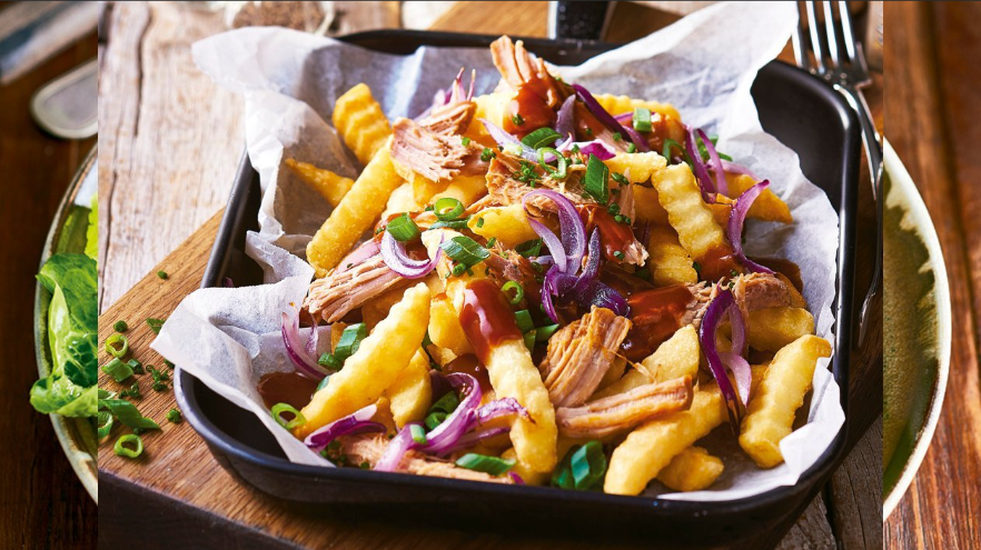 Sausage / Chorizo or Pork Belly / Onion / Corn / French Fries / Cheese / Salad