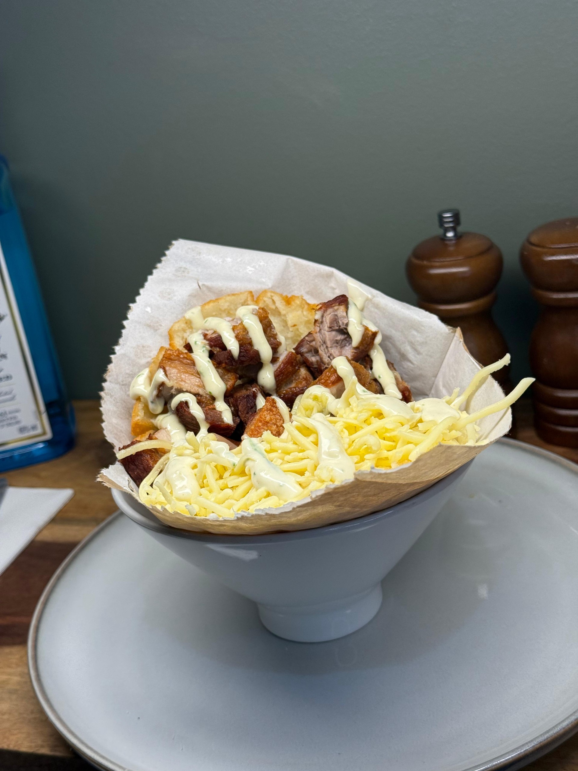 Pork belly, chorizo, avo with cheese on top