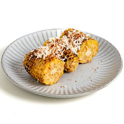 Made with grilled corn on the cob cut into three, slathered with a mixture of mayonnaise, Tajine, Mexican cheese and lime juice.