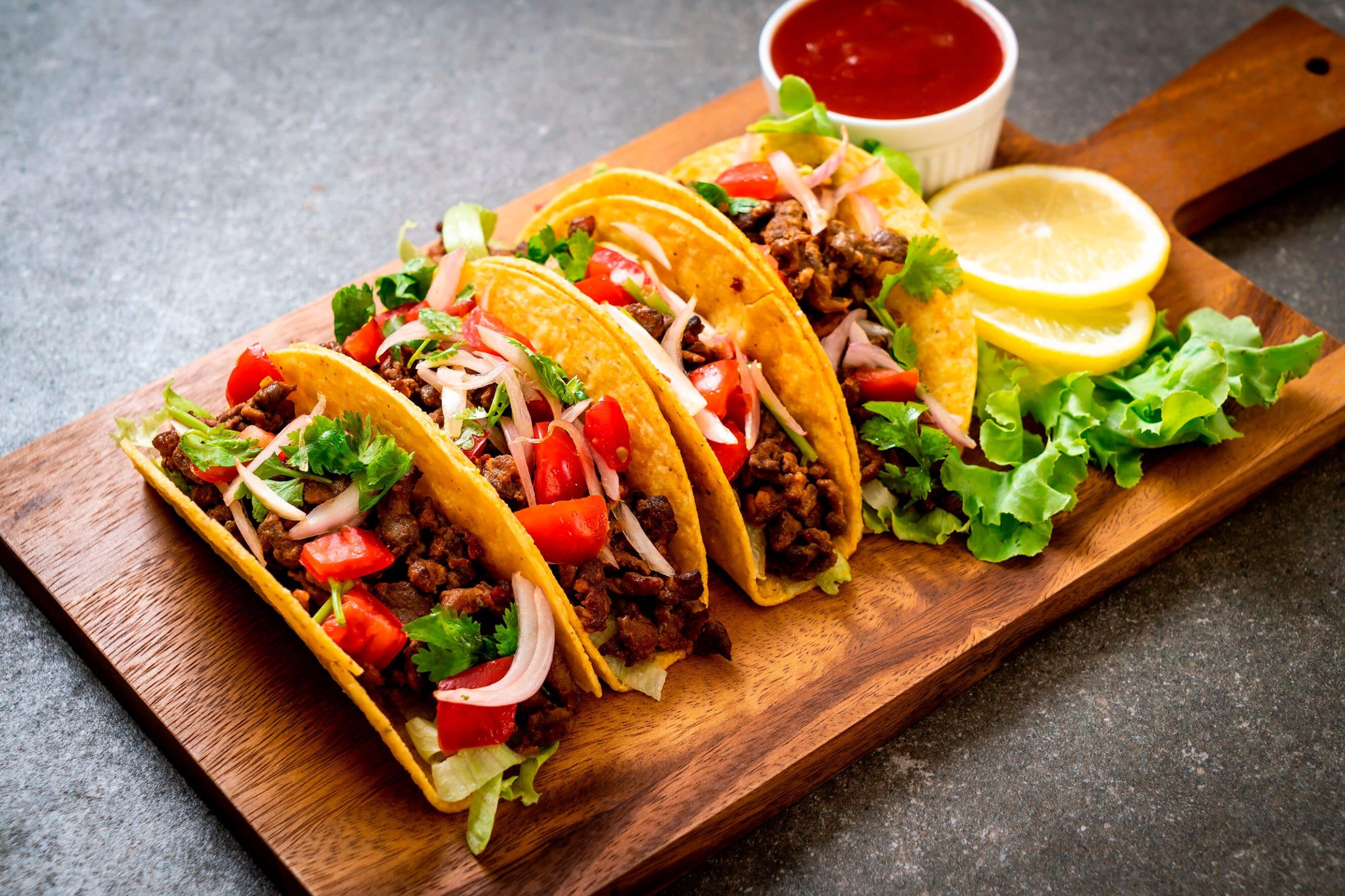 8 Soft Shell Tacos served with: Iceberg lettuce, Pico de Gallo, Sauce, Guacamole, Corn & cheese