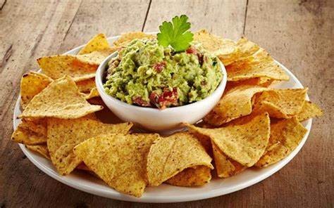 Crisp tortilla strips served with a creamy dip made from ripe avocados.